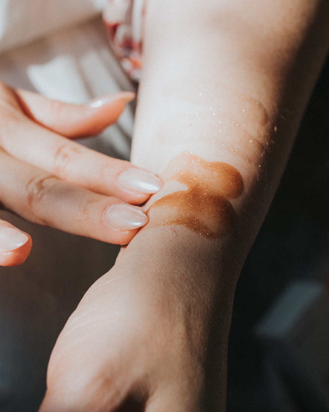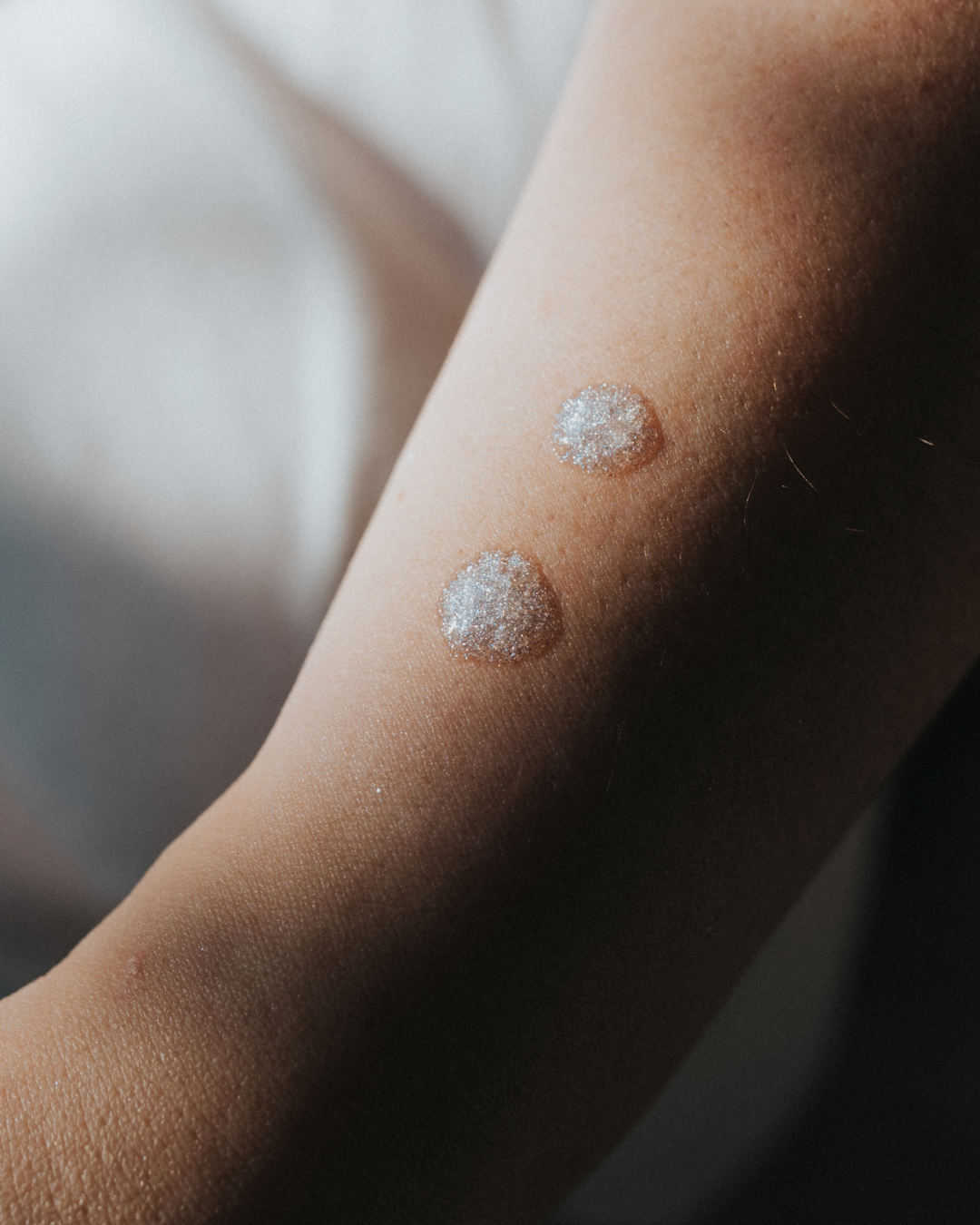 Glow sofisticado na pele: partículas minerais douradas ou prateadas, sem manchar tecidos.