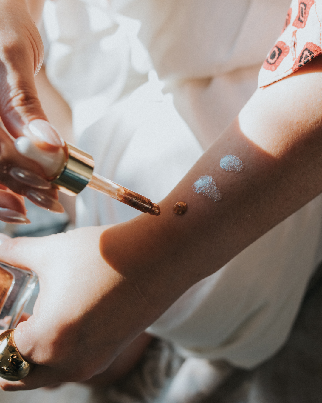 24 Quilates (dourado): brilho quente e radiante, com partículas minerais que aquecem o tom da pele.